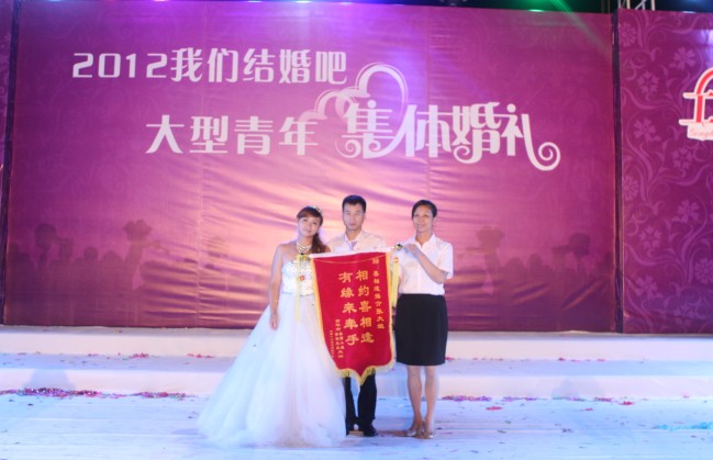 2012集体婚礼新人送锦旗感谢喜相逢婚介